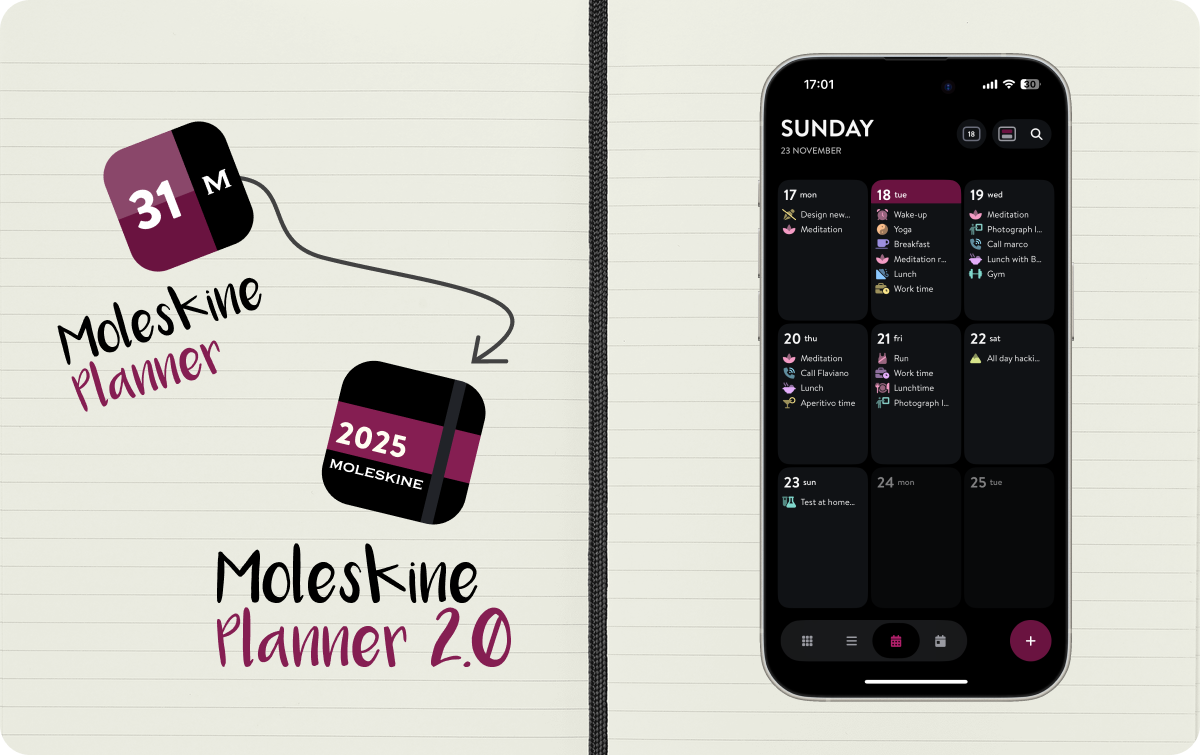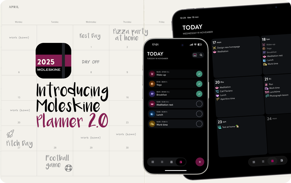 This update is an important step toward making Moleskine Planner a calmer, more mindful, and more powerful space for organizing your time. We hope you’ll enjoy the improvements and as always, thank you for your feedback. It helps us shape the product in the right direction.